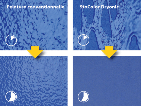 La technologie Dryonic assure une évacuation de l'eau de pluie ou de la rosée en un temps record et permet à la façade de sécher très rapidement.